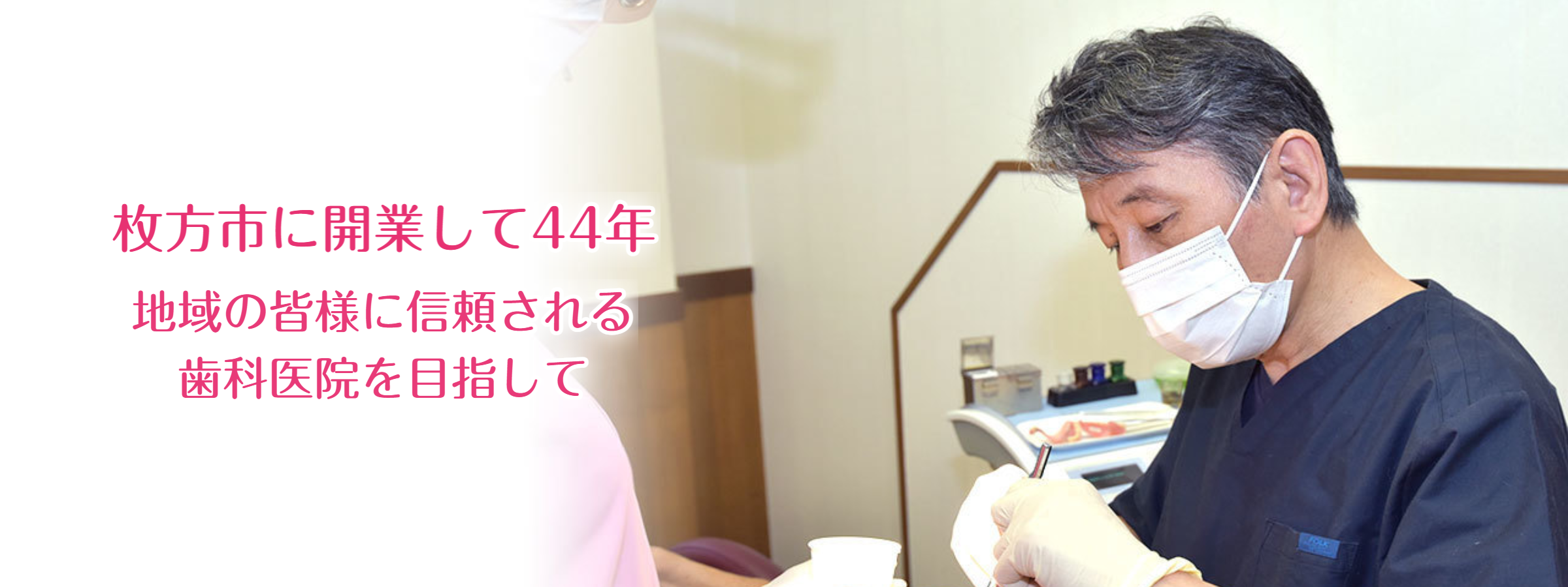 当院の歯科治療で一番に心がけているのは、生まれ持った歯を守り、痛みと負担の少ない治療をすることです。思いやりを大切にした医療サービスを提供することを目標にし、ご自分のお口でいつまでも美味しくお食事ができるよう、歯科医療の分野から枚方市の皆さまに貢献できればと考えております。